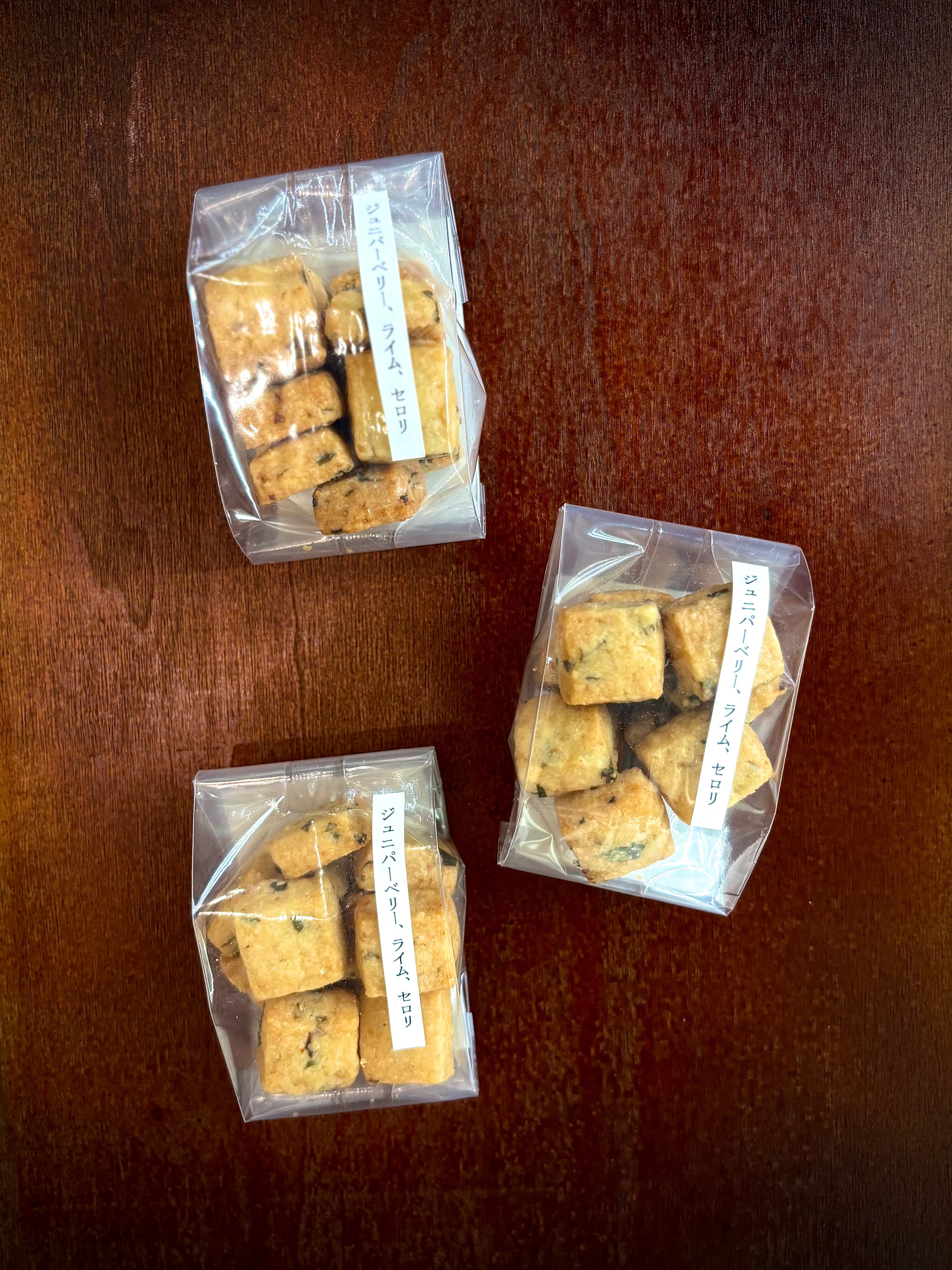 ジュニパーベリーとライムとセロリのおつまみクッキー。
