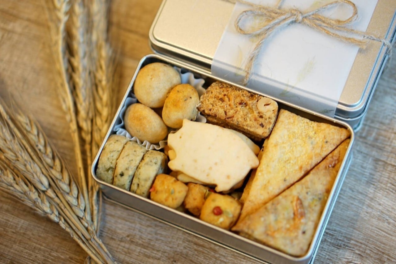 塩気のきいたクッキーを7種集めたおつまみ缶です。